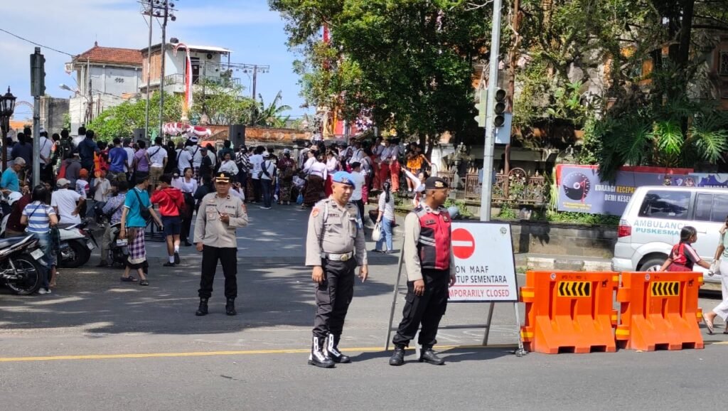 Pengamanan di lapangan dipimpin Padal IPTU I Komang Iwan Setiawan bersama 15 personel Polsek Gianyar. Mereka berkolaborasi dengan petugas Dishub dalam mengatur lalu lintas, menata area parkir, serta mengantisipasi potensi gangguan keamanan dan ketertiban masyarakat (kamtibmas).