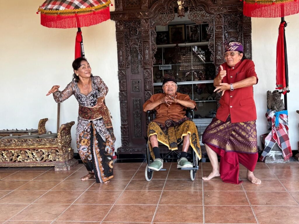 GIANYAR, BALINEWS.ID – Usia senja tak meredupkan semangat berkesenian seorang maestro tari Bali, I Made Djimat. Meski kini lebih banyak beraktivitas menggunakan kursi roda, pria berusia 84 tahun ini tetap menunjukkan kecintaan mendalam terhadap dunia tari yang telah membesarkan namanya. Ingatan Djimat terhadap gerak tari masih begitu kuat. Gerakan khas seperti tanjek, nyeledet, hingga ekspresi dalam Tari Topeng masih sesekali ia peragakan. Senyum dan tawa pun kerap menghiasi wajahnya saat berint…