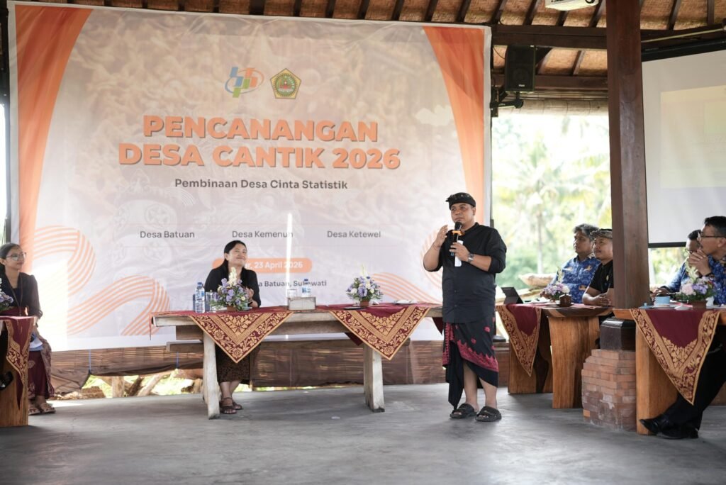 GIANYAR, BALINEWS.ID – Pemerintah Kabupaten Gianyar bersama Badan Pusat Statistik (BPS) Kabupaten Gianyar mencanangkan Program Desa Cinta Statistik (Desa Cantik) Tahun 2026 sebagai upaya memperkuat tata kelola data di tingkat desa. Pencanangan dilakukan di Puspa Aman Desa Batuan, Kamis (23/4/2026).